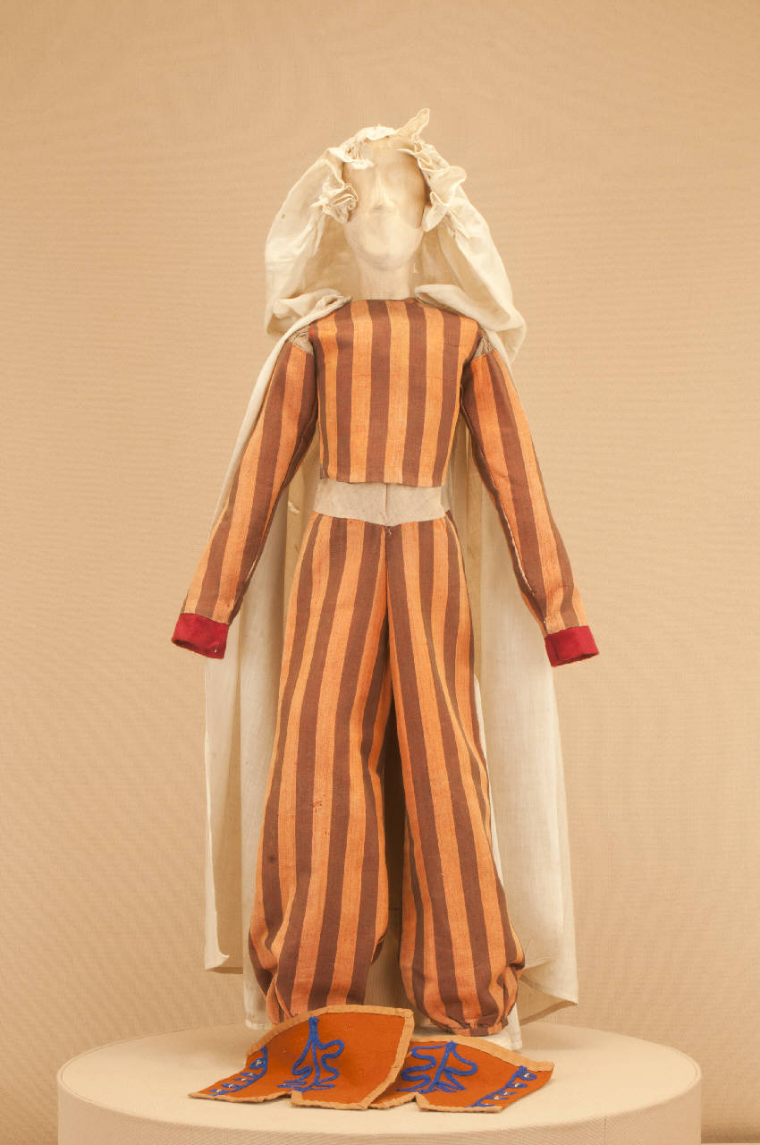 Costume folcloristico di foggia orientale composto da pantaloni, corpino, uose e burnus.