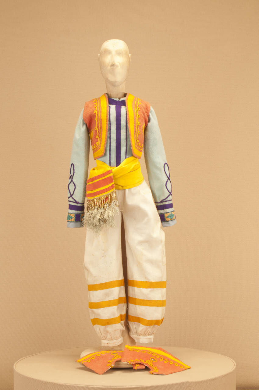 Costume per popolano di foggia orientale composto da pantaloni, corpino, bolero, fusciacca e uose.