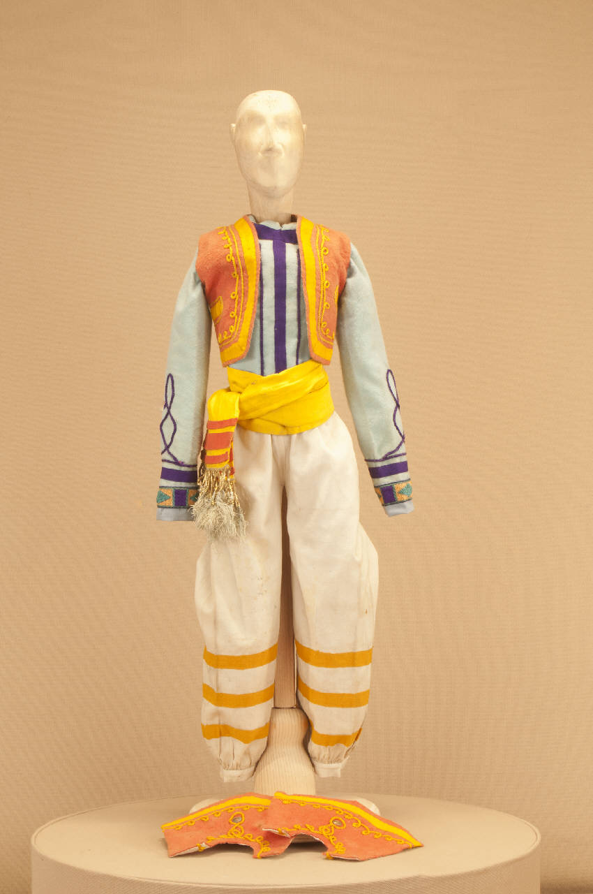 Costume per popolano di foggia orientale composto da pantaloni, corpino, bolero, fusciacca e uose.