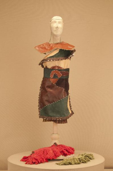 - NOTIZIE STORICO CRITICHE Il costume si completa con un paio di calzature in stile. Lo spettacolo "La leggenda di Pocahontas"andò in scena per la prima volta al "Spoleto Festival USA" di Charleston nel 1989, su precisa richiesta degli spettatori che chiedevano ai Colla uno spettacolo sulla loro epopea. Si trattava di un¿azione mimica su soggetto di Elisabetta Di Mambro ed Eugenio Monti con scene di Pierluigi Bottazzi e costumi di Maurizio Dotti. Le musiche di Alfredo Lacosegliaz ripetevano temi folcloristici antichi delle popolazioni indiane mescolati a motivi di musica europea dell¿età barocca. Nel 1996 Eugenio Monti riscrisse lo spettacolo, trasformandolo in azione drammaturgica, affidando la parte musicale a Danilo Lorenzini e la parte scenografica a Franco Citterio. Vennero rifatti numerosi costumi, su ideazione di Eugenio Monti Colla.