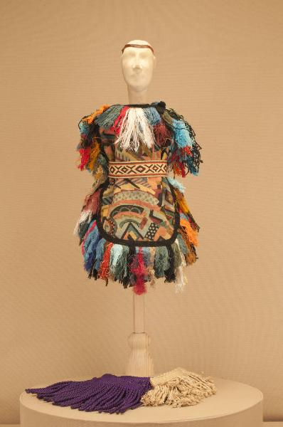 - NOTIZIE STORICO CRITICHE Il costume si completa con un paio di calzature in stile. Lo spettacolo "La leggenda di Pocahontas" andò in scena per la prima volta al "Spoleto Festival USA" di Charleston nel 1989, su precisa richiesta degli spettatori che chiedevano ai Colla uno spettacolo sulla loro epopea. Si trattava di un¿azione mimica su soggetto di Elisabetta Di Mambro ed Eugenio Monti con scene di Pierluigi Bottazzi e costumi di Maurizio Dotti. Le musiche di Alfredo Lacosegliaz ripetevano temi folcloristici antichi delle popolazioni indiane mescolati a motivi di musica europea dell¿età barocca. Nel 1996 Eugenio Monti riscrisse lo spettacolo, trasformandolo in azione drammaturgica, affidando la parte musicale a Danilo Lorenzini e la parte scenografica a Franco Citterio. Vennero rifatti numerosi costumi, su ideazione di Eugenio Monti Colla.