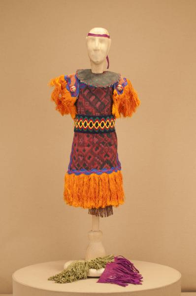 - NOTIZIE STORICO CRITICHE Il costume si completa con un paio di calzature in stile. Lo spettacolo "La leggenda di Pocahontas" andò in scena per la prima volta al "Spoleto Festival USA" di Charleston nel 1989, su precisa richiesta degli spettatori che chiedevano ai Colla uno spettacolo sulla loro epopea. Si trattava di un¿azione mimica su soggetto di Elisabetta Di Mambro ed Eugenio Monti con scene di Pierluigi Bottazzi e costumi di Maurizio Dotti. Le musiche di Alfredo Lacosegliaz ripetevano temi folcloristici antichi delle popolazioni indiane mescolati a motivi di musica europea dell¿età barocca. Nel 1996 Eugenio Monti riscrisse lo spettacolo, trasformandolo in azione drammaturgica, affidando la parte musicale a Danilo Lorenzini e la parte scenografica a Franco Citterio. Vennero rifatti numerosi costumi, su ideazione di Eugenio Monti Colla.
