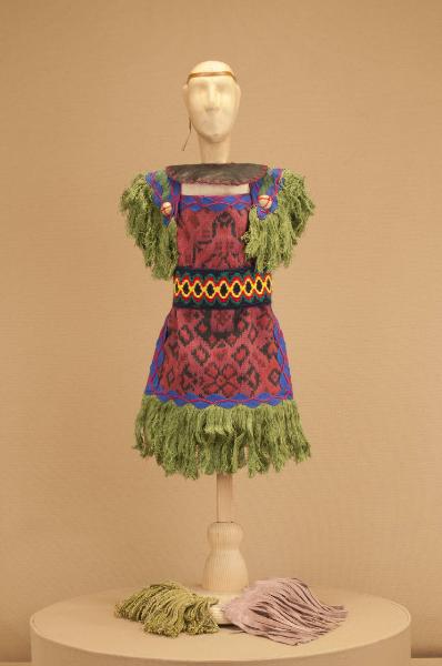 - NOTIZIE STORICO CRITICHE Il costume si completa con un paio di calzature in stile. Lo spettacolo "La leggenda di Pocahontas" andò in scena per la prima volta al "Spoleto Festival USA" di Charleston nel 1989, su precisa richiesta degli spettatori che chiedevano ai Colla uno spettacolo sulla loro epopea. Si trattava di un¿azione mimica su soggetto di Elisabetta Di Mambro ed Eugenio Monti con scene di Pierluigi Bottazzi e costumi di Maurizio Dotti. Le musiche di Alfredo Lacosegliaz ripetevano temi folcloristici antichi delle popolazioni indiane mescolati a motivi di musica europea dell¿età barocca. Nel 1996 Eugenio Monti riscrisse lo spettacolo, trasformandolo in azione drammaturgica, affidando la parte musicale a Danilo Lorenzini e la parte scenografica a Franco Citterio. Vennero rifatti numerosi costumi, su ideazione di Eugenio Monti Colla.