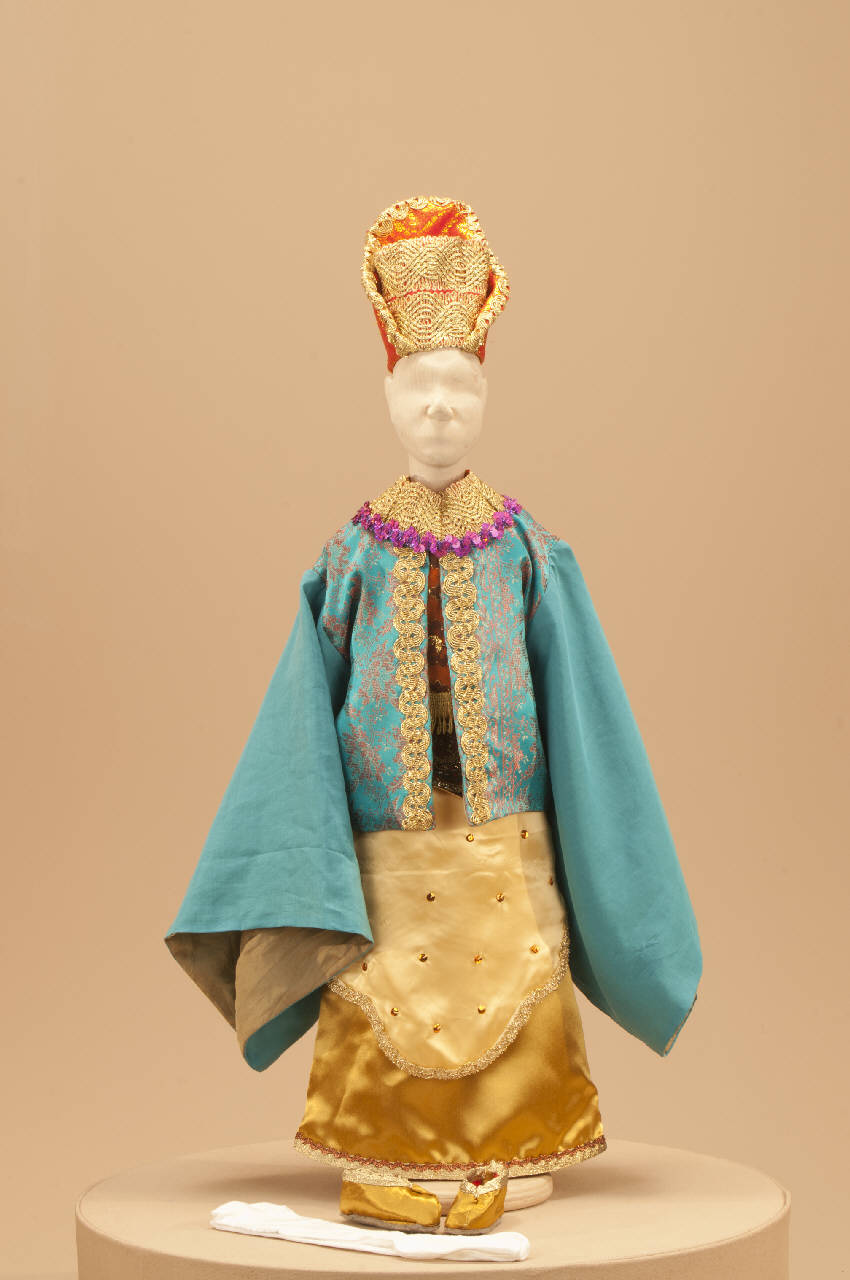 Costume cinese composto da veste, corpino, giacca, cintura,colletto, scarpe e calze.Si completa con cappello che ha il codice GOR17844.