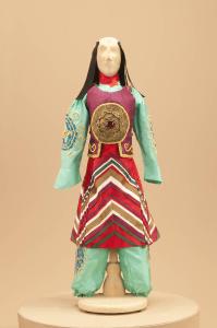Costume cinese composto da pantaloni,corpino,pannelli a cintura,giustacuore,colletto ed acconciatura a girello .
