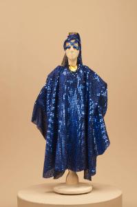 Costume fantastico composto da veste, 2 fascie per perizoma e corpino, 2 fascie per acconciatura, maschera e scarpe .
