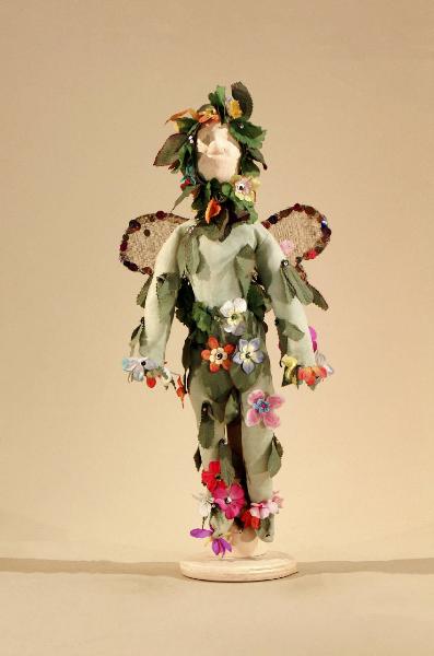 Costume per folletto inserito in contesto del 1600 composto da maglia, calzamaglia, cuffia, cintura, ali