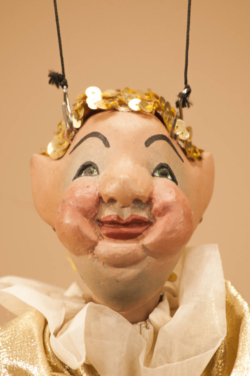 - NOTIZIE STORICO CRITICHE Fa parte di un gruppo di 16 piccole marionette simili fra loro, unite a comporre una ghirlanda che compariva nel finale de La bella addormentata. Lo spettacolo "La bella addormentata nel bosco" scritto da Eugenio Monti Colla si ispira alla fiaba di Perrault e al balletto di Tchaikovsky, le cui musiche sono state selezionate da Luca Del Fra.\nGli elementi tipici delle fiabe si sposano così con la spettacolarità del balletto ottocentesco.\nAndò in scena per la prima volta nel 2001 al Teatro Ponchielli di Cremona.\nLe scene sono state realizzate da Franco Citterio.\nI costumi, confezionati dalla Sartoria della Compagnia, sono stati creati su modelli di due epoche diverse. Nel primo tempo sono costumi di foggia cinquecentesca; nel secondo tempo, passati cento anni dall¿incantesimo, i costumi sono in stile seicentesco.