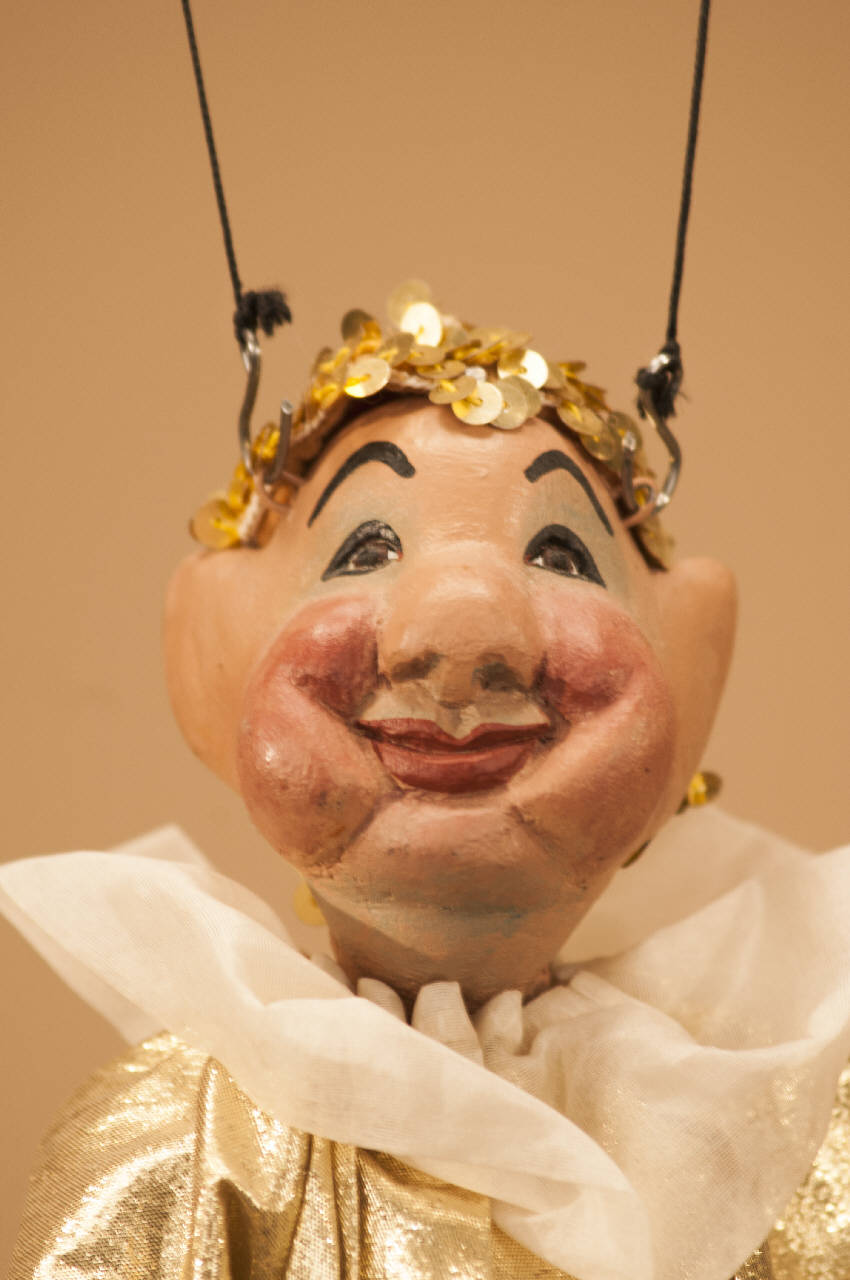- NOTIZIE STORICO CRITICHE Fa parte di un gruppo di 16 piccole marionette simili fra loro, unite a comporre una ghirlanda che compariva nel finale de La bella addormentata. Lo spettacolo "La bella addormentata nel bosco" scritto da Eugenio Monti Colla si ispira alla fiaba di Perrault e al balletto di Tchaikovsky, le cui musiche sono state selezionate da Luca Del Fra.\nGli elementi tipici delle fiabe si sposano così con la spettacolarità del balletto ottocentesco.\nAndò in scena per la prima volta nel 2001 al Teatro Ponchielli di Cremona.\nLe scene sono state realizzate da Franco Citterio.\nI costumi, confezionati dalla Sartoria della Compagnia, sono stati creati su modelli di due epoche diverse. Nel primo tempo sono costumi di foggia cinquecentesca; nel secondo tempo, passati cento anni dall¿incantesimo, i costumi sono in stile seicentesco.