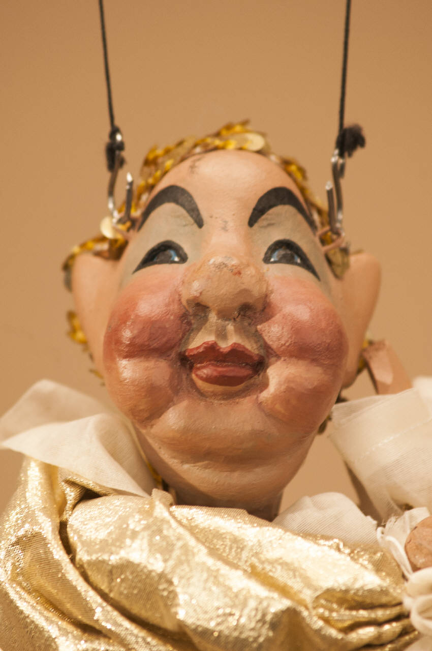 - NOTIZIE STORICO CRITICHE Fa parte di un gruppo di 16 piccole marionette simili fra loro, unite a comporre una ghirlanda che compariva nel finale de La bella addormentata. Lo spettacolo "La bella addormentata nel bosco" scritto da Eugenio Monti Colla si ispira alla fiaba di Perrault e al balletto di Tchaikovsky, le cui musiche sono state selezionate da Luca Del Fra.\nGli elementi tipici delle fiabe si sposano così con la spettacolarità del balletto ottocentesco.\nAndò in scena per la prima volta nel 2001 al Teatro Ponchielli di Cremona.\nLe scene sono state realizzate da Franco Citterio.\nI costumi, confezionati dalla Sartoria della Compagnia, sono stati creati su modelli di due epoche diverse. Nel primo tempo sono costumi di foggia cinquecentesca; nel secondo tempo, passati cento anni dall¿incantesimo, i costumi sono in stile seicentesco.