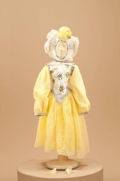 Costume da ballerina composto da gonna, corpino,cuffia e nastri.