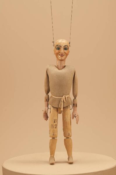 - NOTIZIE STORICO CRITICHE Spilli ricurvi ai lobi delle orecchie per appendere eventuali orecchini. Le mani in pioppo provengono dal materiale acquistato dallo scultore Ugliotti. Il corpo è della seconda metà degli anni 80 del XX sec. E costituisce un tentativo di trovare un modello, ancora in fase di studio, per i corpi delle marionette piccole all'interno della Compagnia Carlo Colla e Figli in quel periodo.