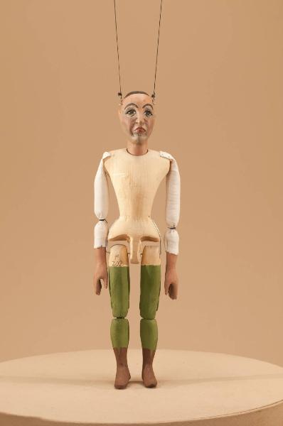 - NOTIZIE STORICO CRITICHE Questo figurino era montato su un carrello che attraversava la scena nello spettacolo Nabucco. Vite ad anello alla sommità del capo. Le gambe sono colorate per evitare con tale espediente l'uso di calzature. La riduzione per marionette dell¿opera "Nabucco" di Giuseppe Verdi nasce nella stagione teatrale 2001/2002 e chiude le manifestazioni per il Centenario della morte del Maestro che la Carlo Colla e Figli aveva celebrato con la messa in scena di "Il Trovatore", nel novembre 2000 e di "Aida", nel febbraio 2001. Secondo la tradizione ottocentesca lo spettacolo presentava una parte in prosa che si alternava con le pagine musicali più celebri della partitura verdiana. L¿azione prendeva l¿avvio con un prologo in cui davanti al Teatro alla Scala, sotto la neve, l¿impresario Merelli consegnava a Verdi il libretto di "Nabucco", secondo quanto lo stesso Verdi scrisse nelle sue memorie.
