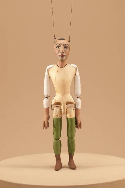 - NOTIZIE STORICO CRITICHE Questo figurino era montato su un carrello che attraversava la scena nello spettacolo Nabucco. Vite ad anello alla sommità del capo. Le gambe sono colorate per evitare con tale espediente l'uso di calzature. La riduzione per marionette dell¿opera "Nabucco" di Giuseppe Verdi nasce nella stagione teatrale 2001/2002 e chiude le manifestazioni per il Centenario della morte del Maestro che la Carlo Colla e Figli aveva celebrato con la messa in scena di "Il Trovatore", nel novembre 2000 e di "Aida", nel febbraio 2001. Secondo la tradizione ottocentesca lo spettacolo presentava una parte in prosa che si alternava con le pagine musicali più celebri della partitura verdiana. L¿azione prendeva l¿avvio con un prologo in cui davanti al Teatro alla Scala, sotto la neve, l¿impresario Merelli consegnava a Verdi il libretto di "Nabucco", secondo quanto lo stesso Verdi scrisse nelle sue memorie.