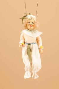 - NOTIZIE STORICO CRITICHE Questo figurino compariva, scendendo dall'alto, in una ghirlanda fiorita insieme ad altri 11 figurini simili, uniti fra loro da una corda colorata. Lo spettacolo "La Tempesta" fu commissionato dalla Biennale di Venezia nella persona di Franco Quadri, direttore del Settore Teatro, nel 1985. Eduardo De Filippo volle che ad interpretarlo fossero le marionette. Lo spettacolo, andato in scena un anno dopo la sua morte al Teatro Goldoni di Venezia, fu curato per la parte registrata, con la voce del celebre attore, dal figlio Luca De Filippo; per i costumi furono creati bozzetti da Maurizio Dotti, modificati in corso di allestimento da Eugenio Monti Colla; le scenografie furono affidate a Pierluigi Bottazzi, Maurizio Dotti e Riccardo Di Lauro. La musica fu composta e diretta dal maestro Antonio Sinagra, compositore di fiducia dalla famiglia De Filippo. Nella ripresa del 2013 furono realizzate nuove scenografie da Franco Citterio e alcuni nuovi elementi scenici e marionettistici.