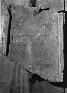 Tegola fittile con bollo, frammentaria e scavata al cetro con iscrizione (..AGILULF..) all'interno di fascia sottosquadro.Tegolo di terracotta con la seguente dicitura a stampo: .+ GL DOMM NN REGAGILULF ET ADLUAVA FILIUS PRAEC PR.\nProveniente dal tetto della Chiesa di San Simpliciano in Milano durante i restauri del 1904.