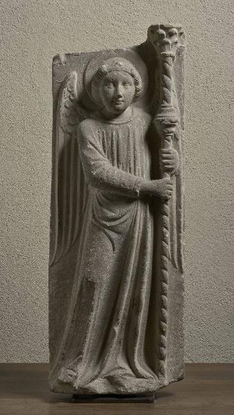 - NOTIZIE STORICO CRITICHE Due lastre marmoree rettangolari con angelo a bassorilievo portante un candelabro contrapposte.\nDim. alt 80 ca; largh. 30 ca.\nSec. XIV. - Arte Campionese\nDa scheda CC - che non indica n° di sorta.\nSono stati veduti dalla fabbrica di Cernusco sul Naviglio.\n(Senza n° PM)