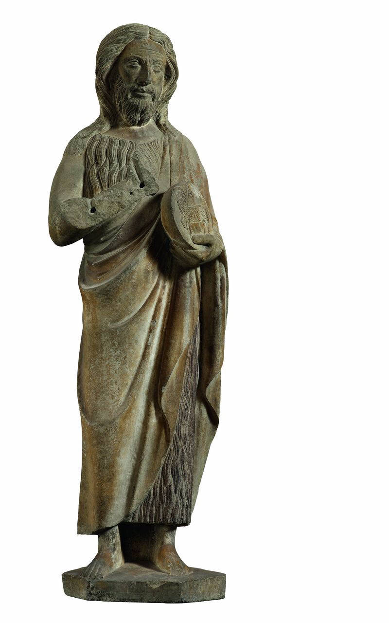 San Giovanni Battista stante reggente un tondo con L'Agnus Dei nella mano sinistra.