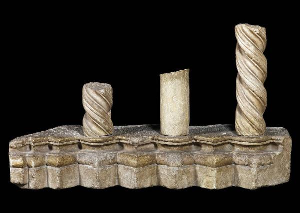 Base poligonale su cui si appoggiano tre rocchi di colonnine di cui due tortili. La colonna centrale sembra un rifacimento in stucco.