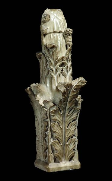 Guglia decorata sui quattro lati con motivi vegetali. Sulla sommità, figura femminile acefala