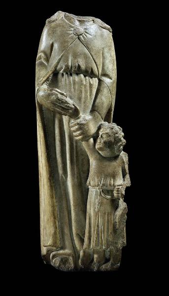 L'angelo, acefalo, tiene la mano di Tobiolo reggente un pesce