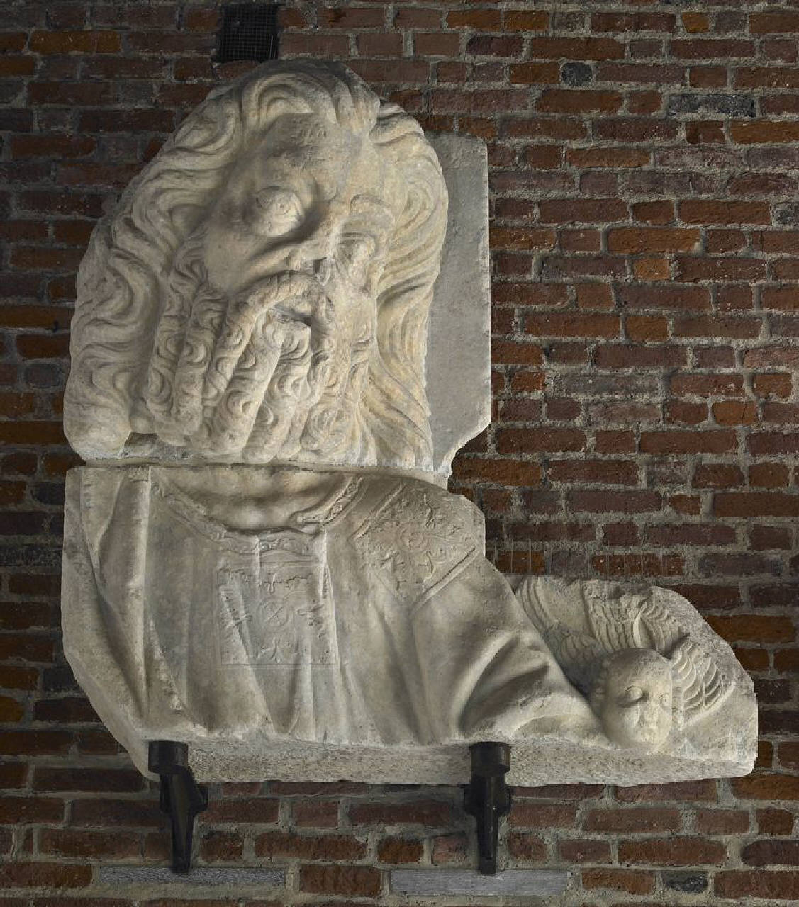 Busto colossale del Padre eterno ? affiancato al lato sinistro da un cherubino. La testa è staccata dal busto.