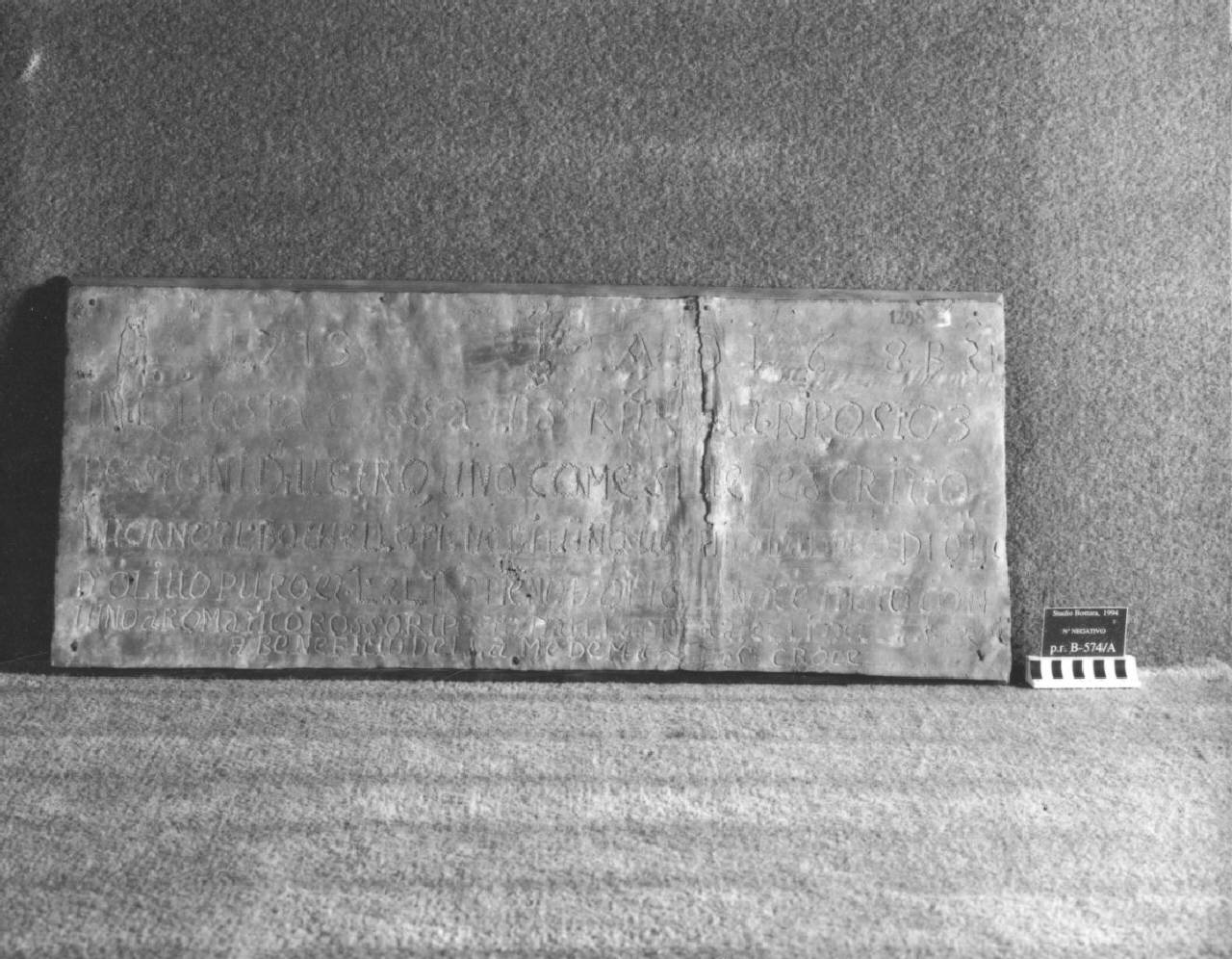 Coperchio recante l'iscrizione a cura dei confratelli dalla Santissima corona