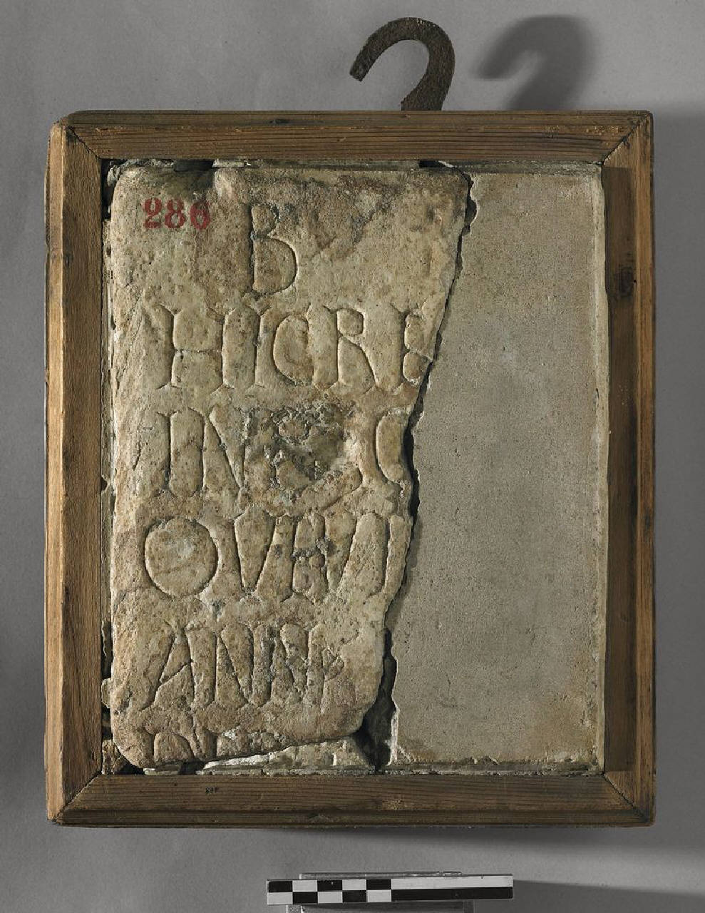 Frammento di lastra con iscrizione funeraria mutila, priva di onomastica, riferita ad un personaggio femminile