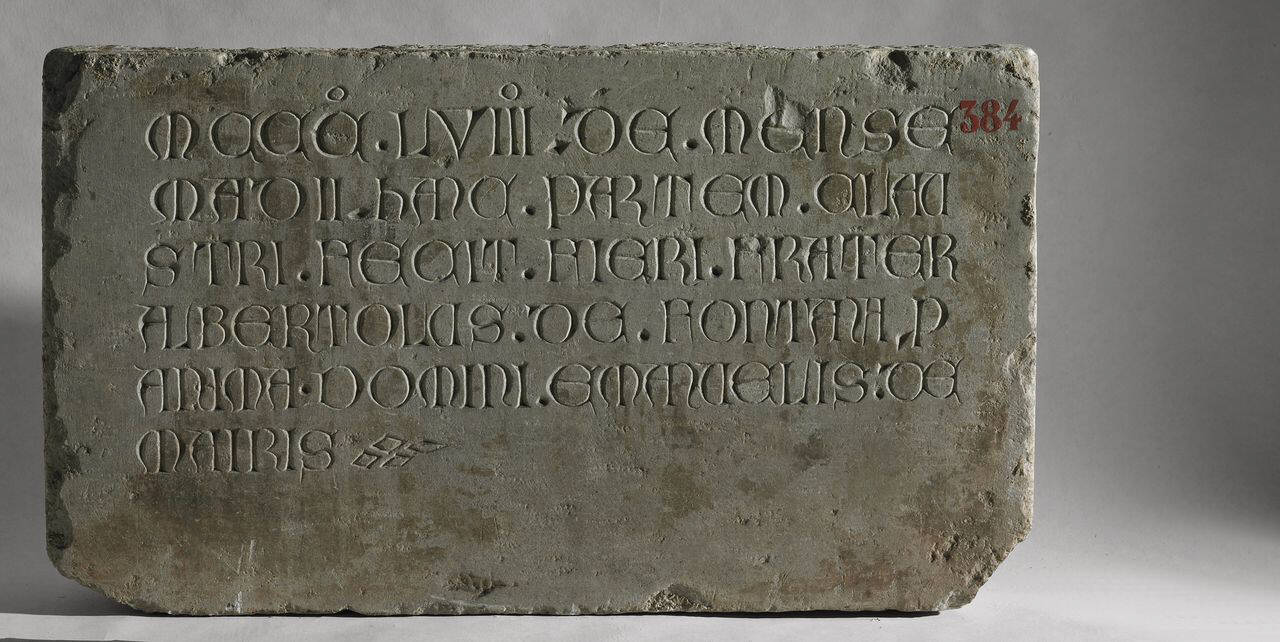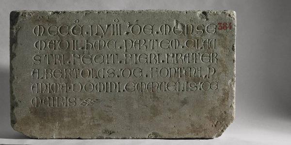 Lastra di forma rettangolare con iscrizione dedicatoria da parte di Albertolo Fontana per Emanuele de Mairi