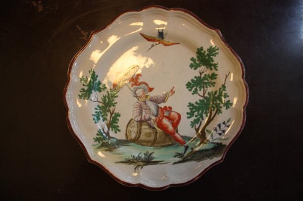 - NOTIZIE STORICO CRITICHE Piatto, siglato e datato 1767, parte di un assortimento formato da centoquarantotto pezzi decorato "a paesini e figure a smalto" (cfr. Inventario manifattura Clerici 1788, A.S.M., Commercio 199). Si tratta del solo piatto "a paesini e figure a smalto" datato che si conosce (cfr. Ausenda, in Museo Arti, 2001).