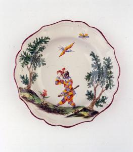 - NOTIZIE STORICO CRITICHE Piatto fondo parte di un assortimento formato da centoquarantotto pezzi decorato "a paesini e figure a smalto" (cfr. Inventario manifattura Clerici 1788, A.S.M., Commercio 199), databile dopo il 1756, anno di adozione della tecnica a piccolo fuoco nella manifattura. A questa raccolta appartiene un piatto con la marca di Felice Clerici e la data 1767 (n. INV. 2338) (cfr. Ausenda, in Museo Arti, 2001).