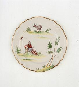 - NOTIZIE STORICO CRITICHE Il piatto in esame appartiene ad un assortimento composto da quaranta pezzi. Si tratta di uno di sei piccoli piatti tondi a otto punte (per gli altri si veda INV. 2306, 2642, 3489, 3490, 3493). Assegnato alla manifattura Felice e Giuseppe Maria Clerici. (cfr. Ausenda, In Museo Arti, 2001).