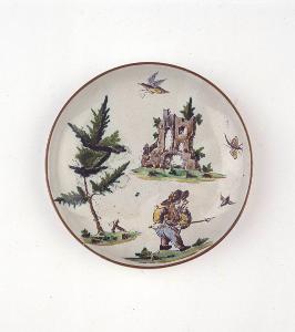 - NOTIZIE STORICO CRITICHE Il piattino in esame fa parte di un assortimento, denominato nell'inventario della manifattura Clerici del 1788 "a paesini e architetture", formato da pezzi di diversa cura esecutiva. Le figure rappresentate sono ispirate alle incisioni di Jacques Calllot (cfr. Ausenda, Museo Arti 2001).