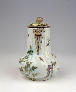 - NOTIZIE STORICO CRITICHE La caffettiera in esame fa parte di un assortimento, denominato nell'inventario della manifattura Clerici del 1788 "a paesini e architetture", formato da pezzi di diversa cura esecutiva. Le figure rappresentate sono ispirate alle incisioni di Jacques Calllot (cfr. Ausenda, Museo Arti 2001).