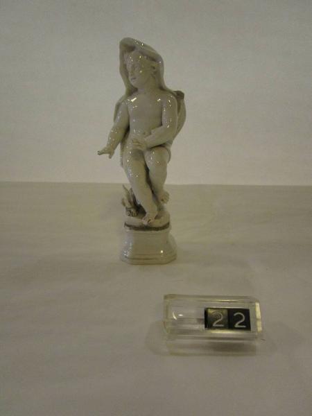Figura di putto, a smalto bianco, su base ottagonale, simboleggiante l'Inverno. Il putto è raffigurato nudo, incappucciato e ai suoi piedi si trova un piccolo fuoco.