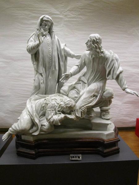 Gruppo su base rettangolare, a smalto bianco, raffigurante Maria Maddalena colta nell'atto di baciare i piedi di Cristo. Dietro di loro assiste alla scena il fariseo. Restaurato nel 2006.