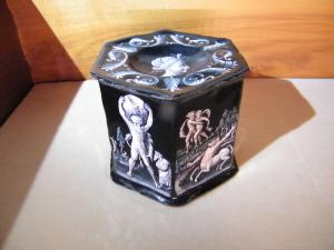 Esagonale con due cavità concave sulla faccia superiore ed inferiore. Sul lato superiore è raffigurato il busto di Deianira e su quello inferiore quello di Ercole. Sui lati sono rappresentati episodi delle fatiche dell'eroe: Ercole e Anteo; Ercole e Cerbero; il ratto di Deianira; Ercole come Atlante con il mondo sulle spalle e il drago Ladone; Ercole e Nesso; Ercole e la fascina per innalzare la sua pira.