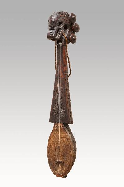 Il Sgra Snyan, liuto a manico lungo a pizzico himalayano, si costituisce di una cassa armonica e manico ricavati da un unico pezzo di legno; cavigliere incurvato in avanti, ha forma di testa di cavallo; 5 piroli; piano armonico in pelle; cassa armonica e manico incisi (onde, rami, greche e nodo); tastiera con incisioni a spirale e rosa.