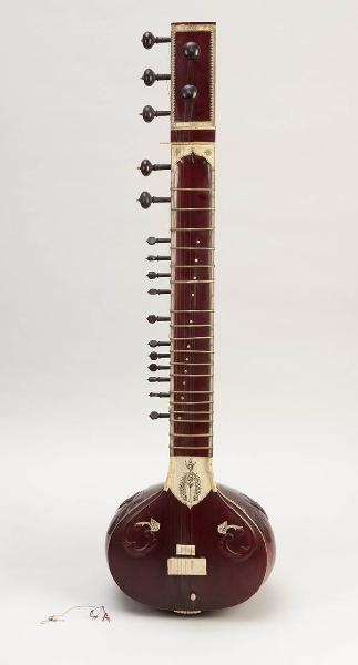 - NOTIZIE STORICO CRITICHE Il sitar (liuto a manico lungo) è uno degli strumenti più importanti della musica classica delle regioni settentrionali e centrali del subcontinente indiano, in particolare di India, Pakistan e Bangladesh, con alcune propaggini in Afghanistan e Nepal. Benché attualmente sia ampliamente utilizzato in numerosi e vari contesti, lo strumento è principalmente destinato alla musica da camera tradizionale: nei secc. XVII e XVIII era lo strumento più importante delle corti musulmane e indù, ora è suonato nei concerti pubblici, con prevalenza di quelli cosiddetti di musica classica, e il suo repertorio è diffuso attraverso i mezzi di comunicazione di massa. Nel Rajastan il sitar è ancora suonato da musicisti itineranti di estrazione rurale. Il nome sitar è una trascrizione del persiano sehtar ("munito di tre corde"), essendo il persiano la lingua di corte dell'India settentrionale dal XIII al XIX sec. Il sitar divenne popolare solo verso il XVIII sec. quando assunse la forma attuale, dunque per ricostruirne la storia a partire dalle forme più arcaiche è necessario prendere come punto di riferimento i vari termini persiano-turchi utilizzati per i liuti a manico lungo (come tanbur, tanburah).\nDurante il sultanato di Delhi (1192-1526) l'arrivo di immigrati persiani e turchi, che andavano a costituire l'esercito del sultanato, contribuì alla diffusione dei liuti a manico lungo con cassa ovoidale o piriforme, manico sottile con cavigliere non separato nei quali le caviglie sono inserite sia lateralmente sia frontalmente. Potevano essere sia muniti di tastiera, con i tasti costituiti da legature di budello (come negli attuali liuti dell'Asia centro-occidentale), sia privi di tastiera. Una tradizione musulmana attribuisce l'invenzione del sitar e di altri strumenti al poeta di corte Amir Khusrav, vissuto nel XIV secolo.\nL'attuale forma dello strumento sembra derivare da una sintesi tra il dutar uzbeko e il tanbur afghano, realizzatasi nel periodo Moghul (1526-1707): con il primo ha in comune il raccordo tra cassa e manico realizato con una calotta di legno; con il secondo il grande e lungo manico con cavigliere non angolato. Il dutar presenta inoltre un'accordatura a tre corde analoga a quella del sitar; nello stile esecutivo di entrambi gli strumenti la seconda corda fa da bordone alla prima e la terza alla seconda, le corde sono intonate in ordine decrescente dalla sinistra alla destra del suonatore secondo un sistema tipico dei liuti dell'Asia centro-occidentale.\nDurante il tardo impero Moghul (1707-1858) sitar assume la forma moderna e diventa uno strumento solista. In questo periodo il nome sitar si stabilizzò e il numero delle corde fu portato a cinque.\nLa struttura attuale del sitar è quella esemplificata dallo strumento descritto sopra, esistono tuttavia inoltre esemplari muniti di un secondo risuonatore di zucca applicato al manico. Innovazioni del XIX sec. furono l'introduzione di un numero maggiore di tasti (che furono portati a venti), l'adozione delle corde di risonanza e delle due corde di bordone laterali munite ciascuna di un piccolo capotasto cilindrico.\nIl suonatore di sitar siede a terra con la gamba sinistra sotto la destra o a gambe incrociate, il risuonatore è appoggiato al piede della gamba sinistra (nel primo caso) o alla coscia destra (nel secondo) ed è tenuto in posizione dall'avambraccio destro, mentre la mano sinistra sorregge il manico. Il sitar è pizzicato con l'apposito plettro.