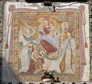 - NOTIZIE STORICO CRITICHE L'affresco rivela la medesima mano del dipinto murale in Via don Bepp, n. 324, a sua accompagnato da un'iscrizione che ne assegna l'esecuzione all'inizio del XVIII secolo.