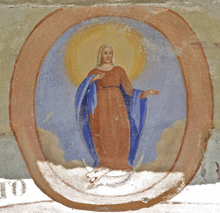 - NOTIZIE STORICO CRITICHE La Madonna Immacolata, collocata in modo significativo alla sommità della cappella, riprende una consolidata iconografia affermatasi durante la Controriforma. Essa si ispira alla "donna incinta dell'Apocalisse", "vestita di sole, con la luna sotto i suoi piedi e sul capo una corona di dodici stelle" (Apocalisse, 12, 1).