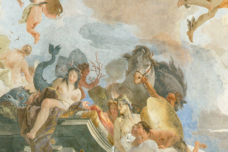 Sulla volta della galleria grande di Palazzo Clerici, tra l'innumerevole quantità di figure, personaggi e miti, sono rappresentate, procedendo in senso orario, anche l'Allegoria del Mondo marino, alla fine del lato lungo di destra (lato aperto da cinque finestre), e l'Allegoria del Mondo fluviale, alla fine del lato opposto (lato decorato da arazzi) e in parte proseguente pure nel lato breve adiacente.