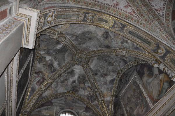 - NOTIZIE STORICO CRITICHE La commissione degli affreschi giunse assai verosimilmente dopo la morte di Pietro Antonio Marliani, avvenuta nel 1594 come attesta una lapide ancora presente. Marliani era un personaggio di indubbio spessore nella Milano contemporanea, avendo ricoperto la carica di presidente del Magistrato per le rendite ordinarie e Consigliere segreto dello Stato. Purtroppo le ricerche, pur avendo cercato di dare qualche risposta convincente, non hanno ancora permesso di stabilire i responsabili dei diversi interventi. Negli affreschi emerge una cultura decisamente diversa, orientata al recupero di elementi della maniera romana, in particolare dei modi divulgati dall'orvietano Cesare Nebbia (allievo del bresciano Girolamo Muziano) nei cantieri gregoriani e sistini negli anni ottanta e novanta del Cinquecento. Tale cultura (basata sulla reintepretazione di motivi michelnagioleschi riletti e combinati insieme alla "grazia" raffaellesca), peraltro, era già permetata in ambito milanese, e più in generale lombardo, non solo tramite il veicolo di Giovanni Ambrogio Figino, ma anche con la diretta presenza a Pavia dello stesso Nebbia e di Federico Zuccari. Difficile, infine, è confermare la proposta attributiva nei confronti del poco noto maestro milanese Francesco Nappi (1565 ca.-1630 ca.), attivo anch'egli nel contesto romano (si veda la decorazione dell¿abside di San Giacomo degli Incurabili, eseguita nell'anno giubilare del 1600 su committenza del cardinale Antonio Maria Salviati; le fonti ricordano anche le pitture in San Nicola in Carcere e i mosaici della cappella Clementina in San Pietro, eseguiti nel 1602, sebbene la sua impresa più nota, forse il suo capolavoro, resti quella degli affreschi del chiostro di Santa Maria sopra Minerva, eseguiti tra il 1603 e il 1607 per conto del vescovo Andrea Fernández de Córdoba). Tornando in ambito lombardo, non è sbagliato riprendere la pista d'indagine partendo dai confronti con alcuni affreschi della bottega dei Fiammenghini, pittori anch'essi formati sull'esempio della maniera centro italiana.