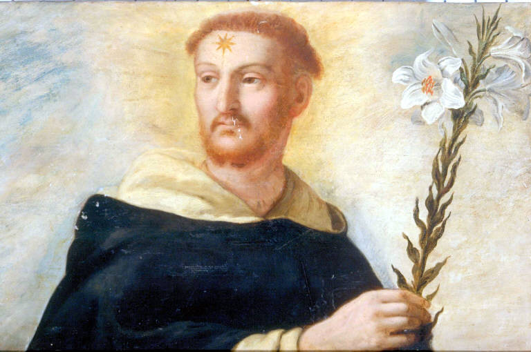 - NOTIZIE STORICO CRITICHE L'estensore della scheda cartacea, identificando il dipinto nella rappresentazione di S. Andrea Avellino, qui ritenuto S. Domenico, ha giustamente collocato l'opera, facente parte del nucleo più antico di pitture del Museo, "nell'ambito della scuola lombarda della metà del XVII secolo, sulla scia dei numerosi esempi lasciati dal Morazzone in chiese e palazzi della Lombardia" (F. Mannu Pisani). \nD'altra parte il dipinto, pervenuto ai Musei Civici dal Municipio di Como entro 1898 (Catalogo Sala pitture, n. 7) unitamente ad altri due di soggetto e supporto analogo, testimonia la diffusione del culto per i santi domenicani favorita dai padri predicatori insediati nel distrutto convento comasco di S. Giovanni in Pedemonte. L'ignoto autore della tavola, oltre che rifarsi all'insegnamento del Morazzone, sembra qui tenere conto per l'assorto patetismo anche del linguaggio figurativo di Daniele Crespi, mediato dalla lezione nuvoloniana.
