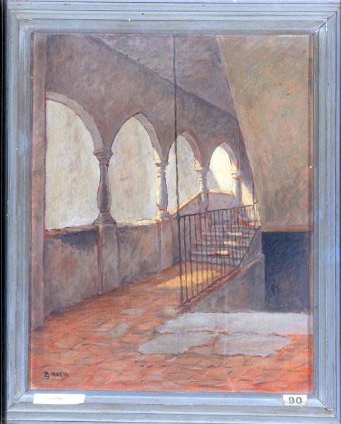 - NOTIZIE STORICO CRITICHE Il dipinto, che riveste un interesse principalmente iconografico e documentario, rappresenta uno scorcio dello scomparso quartiere denominato "Cortesella", all'interno della "città murata", insieme ad altre tre opere di Luigi Binaghi, pure appartenenti allle collezioni dei Musei Civici di Como. In particolare, il portico raffigurato nella scheda in oggetto, sembra lo stesso del dipinto inventariato con il n. 87, qui ripreso dall'interno.\nIl pittore comasco, che espose per la prima volta alla Permanente di Milano nel 1917 con il quadro Reminescenze e, successivamente, a Torino (Quadriennale del 1928), a Como, a Bologna, a Lecco e a Santiago del Cile, ricevette il Primo premio Lissone nel 1951.