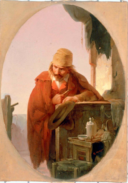- NOTIZIE STORICO CRITICHE Come osserva l'estensore della scheda cartacea: " ll dipinto è opera del pittore milanese allievo dell'Hayez; autore di soggetti di genere, ma soprattutto storici; compì il quadro probabilmente verso il sesto decennio del secolo per le analogie con il "Benvenuto Cellini" (...) della Pinacoteca Civica di Milano".