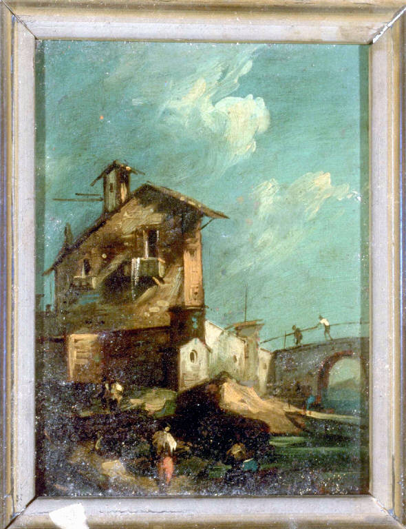 - NOTIZIE STORICO CRITICHE Come ha osservato l'estensore della scheda cartacea "benchè non trovi rispondenza in nessuno dei capricci di F. Guardi noti, il dipinto è una copia di un originale, oppure è un'imitazione di fantasia di un modello del pittore. Come il pendant[...] è opera [...] di uno dei tanti imitatori, o falsari, che riproponevano, per i privati, mediocri scampoli di derivazione grossolana".