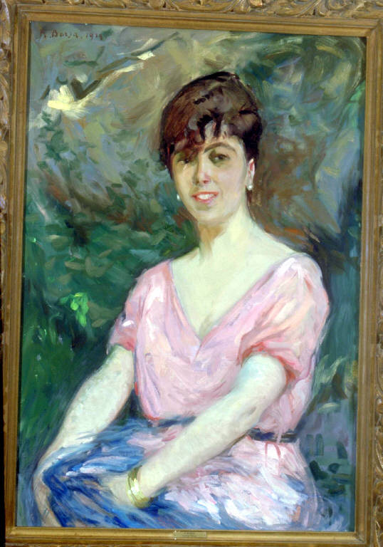 - NOTIZIE STORICO CRITICHE La donna rappesentata appartiene alla famiglia Feloy che nel 1999 ha donato la propria collezione di dipinti al Comune di Como.\nL'autore del quadro, Roberto Borsa, trattò principalmente ritratti e vedute. Tra i suoi dipinti più noti vi sono quelli conservati nella Galleria d'Arte Moderna di Milano: Case di Sottomarina; Nevicata ai Bastioni di Porta Vittoria; Ritratto del pittore Leonardo Bazzaro; Lecco industrie; Ponte di Boffalora (Caramel-Pirovano, 1974).