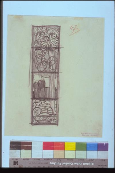 - NOTIZIE STORICO CRITICHE Il disegno è un bozzetto per i pannelli laterali a vetri del monumento Caprotti nella versione definitiva.