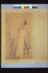 Casa a gradinata con ascensori esterni. Studio. Studio di casa a gradinata con ascensori esterni